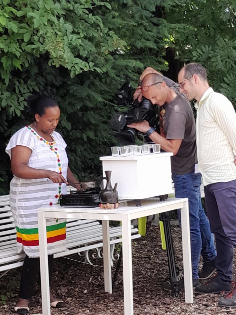 Dans le cadre d’un projet autour du thème « changer les regards sur l’exclusion », 2 travailleurs sociaux de l’Accueil de Jour accompagnés de 2 personnes en errance, en présence…