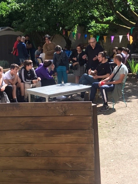 Un grand merci à eux pour leur générosité. La rencontre s’est ponctuée par un temps convivial au sein du jardin du foyer de la Manutention. Les deux personnes en errance ont été satisfaites de cette rencontre et ont pu faire part de leur vive émotion quant à l’accueil bienveillant et chaleureux des lycéens.