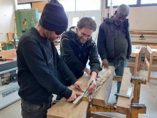 L’équipe a pu découvrir, très impressionnée, de l’outillage comme une dégauchisseuse, une raboteuse et une toupie.