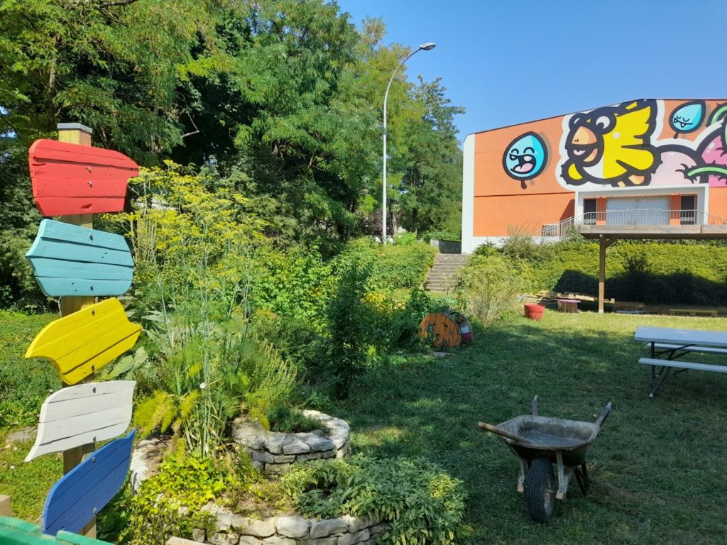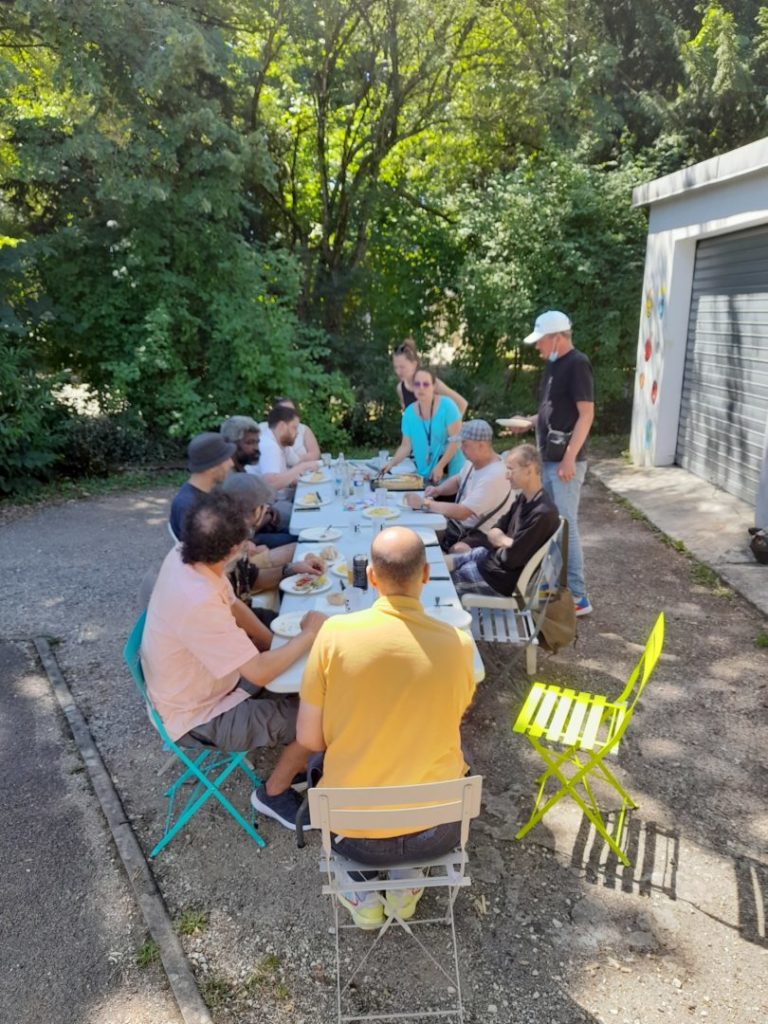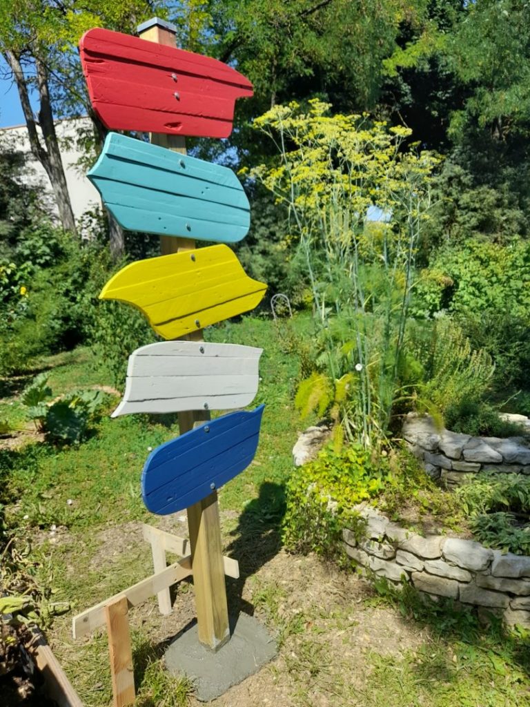 Dans le cadre du festival Baz’Arts organisé par la MJC des Grésilles, les bénéficiaires de l’atelier de remobilisation – EPI ont pu réaliser un totem en palette aux couleurs de la nouvelle charte graphique de la MJC, chaque couleur représentant un pôle/ service de la MJC.