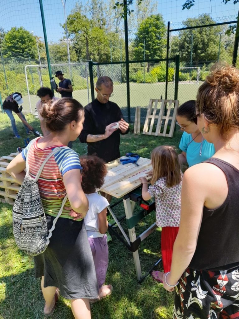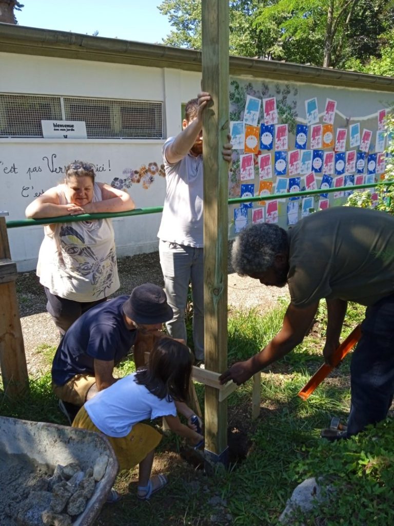 Ouvert à tous, ils ont pu partager leurs expériences et ainsi construire par étapes le totem avec une dizaine de personnes du quartier.