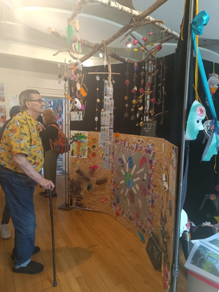 Mais, auparavant, ces résidents inscrits pour cette exposition, au cours des semaines passées, ont répondu présents à chaque atelier art-thérapie, ont vu leurs œuvres prendre corps d’abord dans leur imagination puis dans le choix des matériaux, leur agencement, le tout sous le regard et le savoir-faire de Maud…
