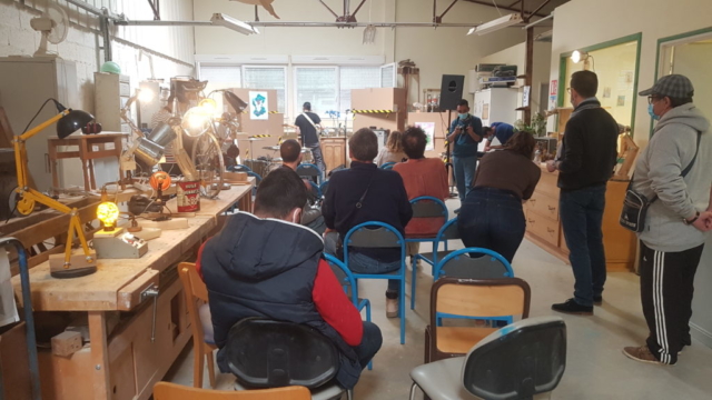 Dans le cadre du partenariat et toujours dans un esprit d’échange collaboratif de savoir-faire, La Vapeur a proposé à l’équipe d’organiser un concert au sein de l’atelier bois. C’est avec grand plaisir et une grande motivation des bénéficiaires que cette proposition fut acceptée. Très rapidement, toute l’équipe s’est mobilisée pour préparer ce spectacle.