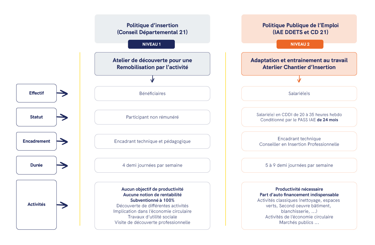 Ces différents dispositifs permettent de créer un parcours d’insertion sociale et professionnelle individualisé pour permettre l’inclusion des personnes très éloignées de l’emploi. L’articulation entre la politique d’insertion du conseil départemental et la politique publique de l’emploi permet de regrouper deux phases distinctes mais complémentaires et surtout indispensables à la construction des parcours singuliers.