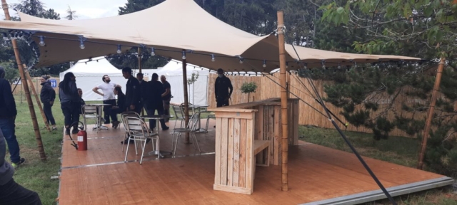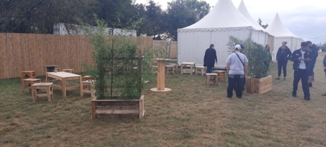 En vue de créer une atmosphère « chill », les participants de l’Espace Permanent d’Insertion ont réalisé des tabourets, des tables basses, des mange-debout vélos, …