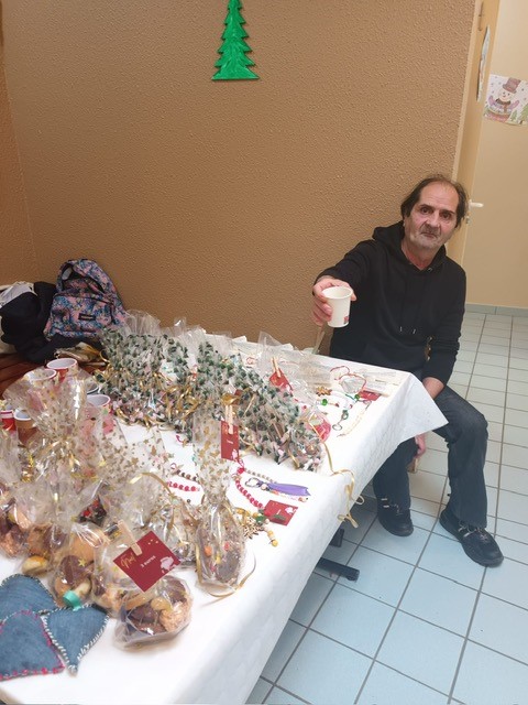 A cette occasion une dizaine de pensionnaires de « L’Escale » et de « La Maisonnée » se sont mobilisés ces dernières semaines au travers d’un atelier encadré par les professionnels et l’aide précieuse d’une bénévole, pour confectionner des créations de Noël, bijoux, décorations, portes clefs, friandises et ballotins de chocolats maisons.