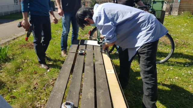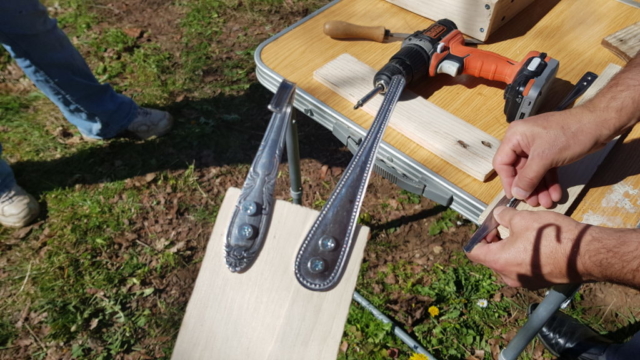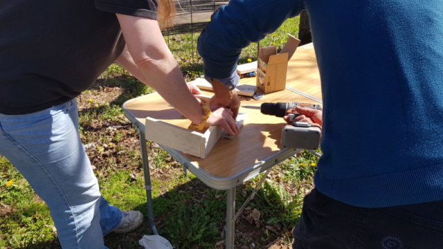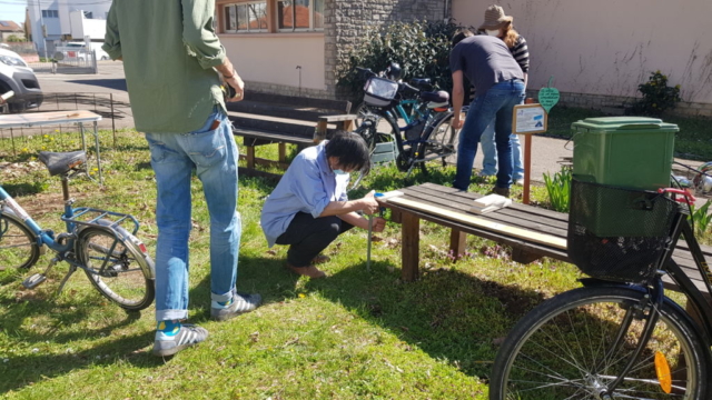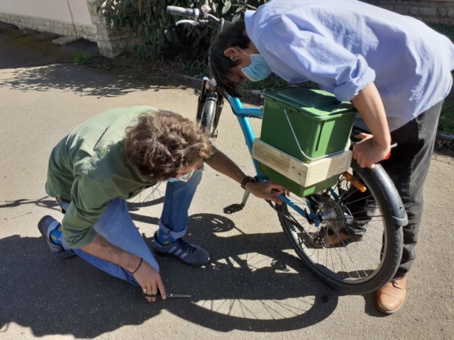 Atelier Fabrication « porte-bioseau pour vélo »’atelier de remobilisation, Espace Permanent d’Insertion – SDAT Entreprise – et l’association Arborescence ont proposé un atelier pour fabriquer des porte-bioseaux pour vélo, à partir de palettes et de couverts de récupération.