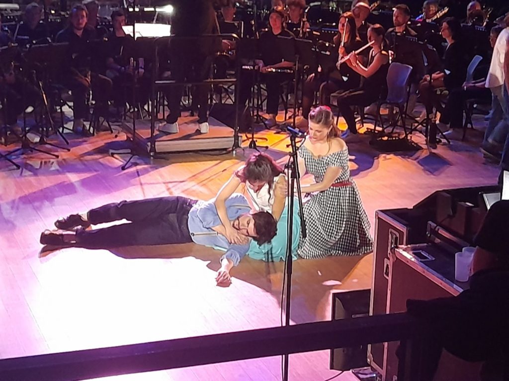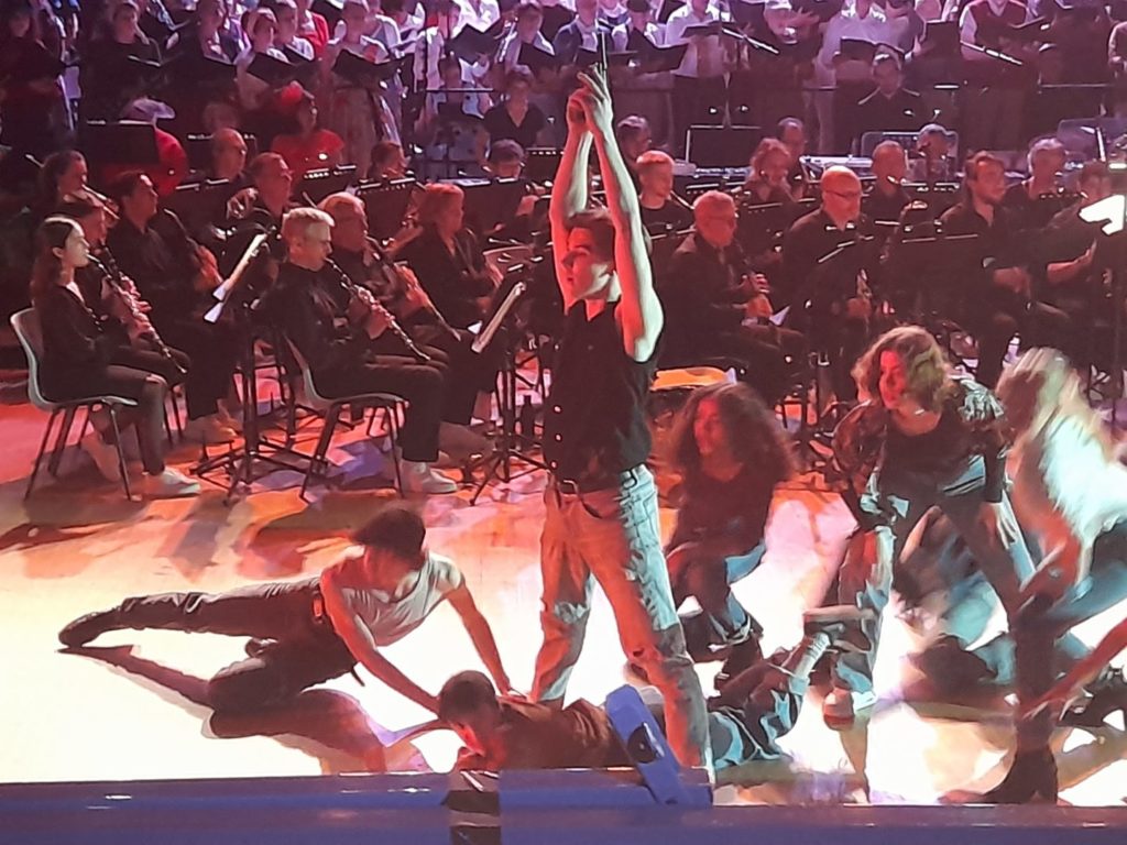 L’orchestre Départemental de Côte d’Or, dirigé par Luc Bouhaben, les dix chorales à Cœur Joie et autres de Bourgogne Franche-Comté , nous ont fait revivre le drame terrible. Les danseurs du studio Solidanse sous la direction de Sandra et Brandon Wasson ont sublimé l’engagement physique de ces jeunes piégés dans les rivalités et autres luttes de territoires. Les deux chanteurs lyriques tenant les rôles de Tony (Antonel Boldan – ténor) et Maria (Sabine Revault d’Allonnes – soprano), ont quant à eux, par leur puissance vocale, su évoquer toute la déchirure insolutionnable de cet amour voué au dénouement mortel.